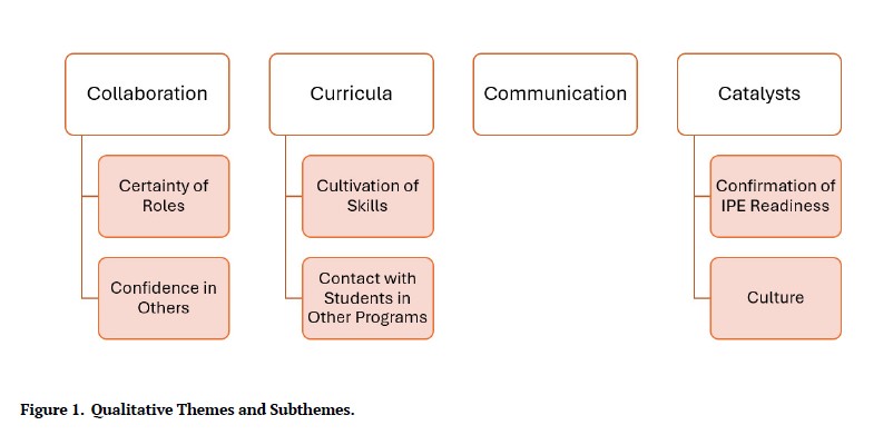 Findings revealed four overarching themes with six subthemes: (1) Collaboration (certainty of roles, confidence in others), (2) Curricula (cultivation of skills, contact with students in other programs), (3) Communication, and (4) Catalysts (confirmation of readiness, culture). Participants emphasized that early, structured exposure to interprofessional roles fosters teamwork, trust, and respect. They advocated for increased integration of IPE across curricula and hands-on activities to reinforce IPC competencies.